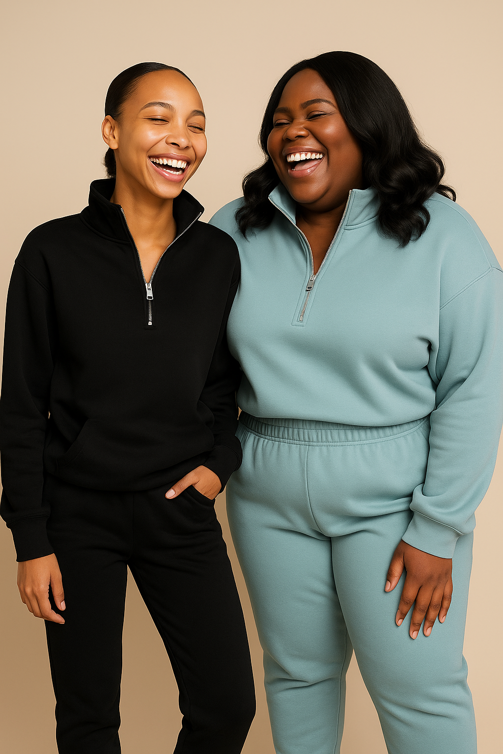 Stay cozy and confident in our Half Zip Jogger Set from QueenzReign. this premium loungewear set blends comfort and style — perfect for everyday wear, errands, or relaxing in chic streetwear style.